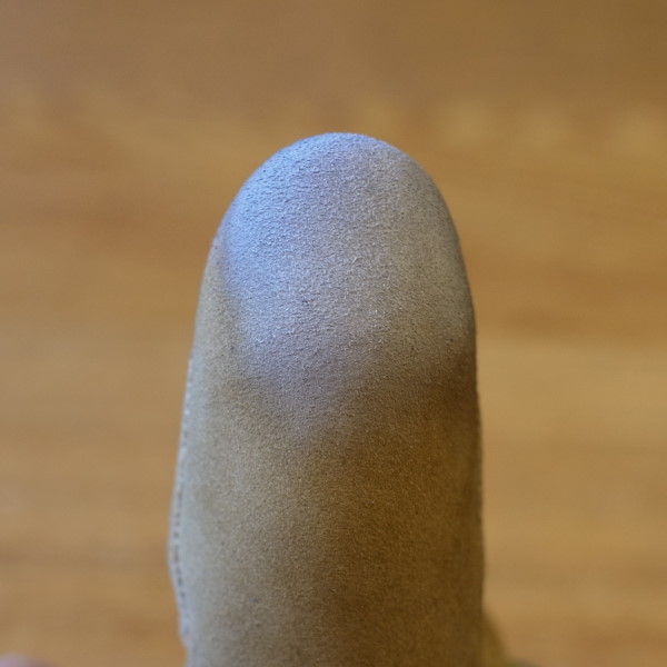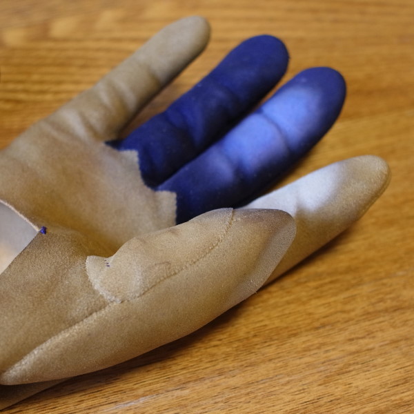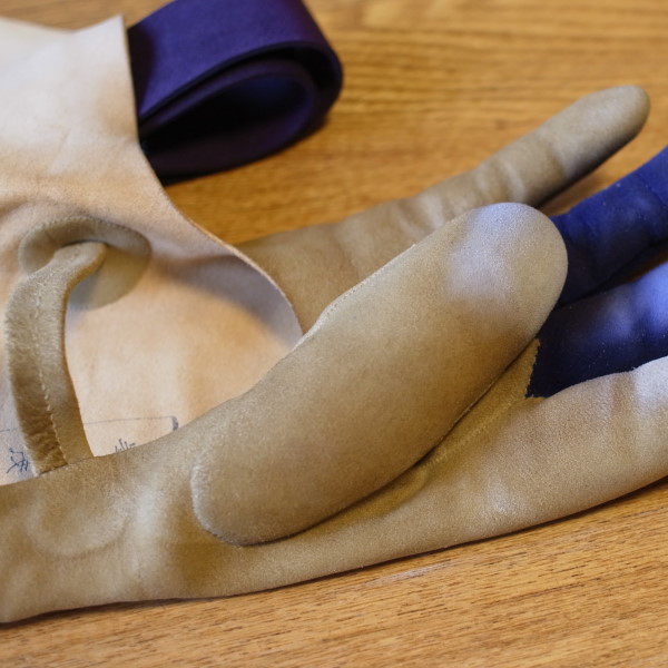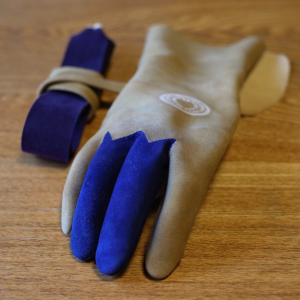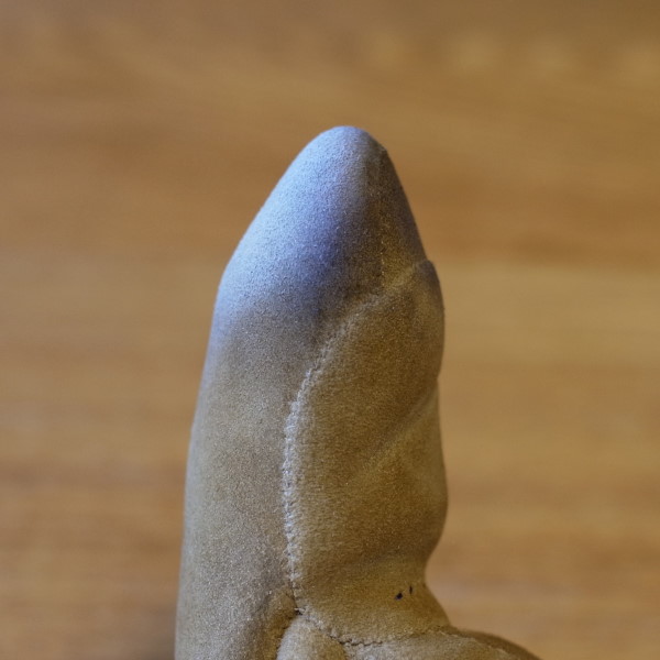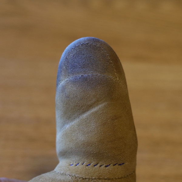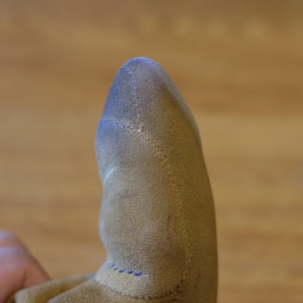 親指先が鋭角なので、指を組んで握り込んだときに親指腹側と薬指の干渉が少なくて良いです。ポッテリした三河風帽子よりも自然に指組(三ッの取り懸け)ができる気がします。